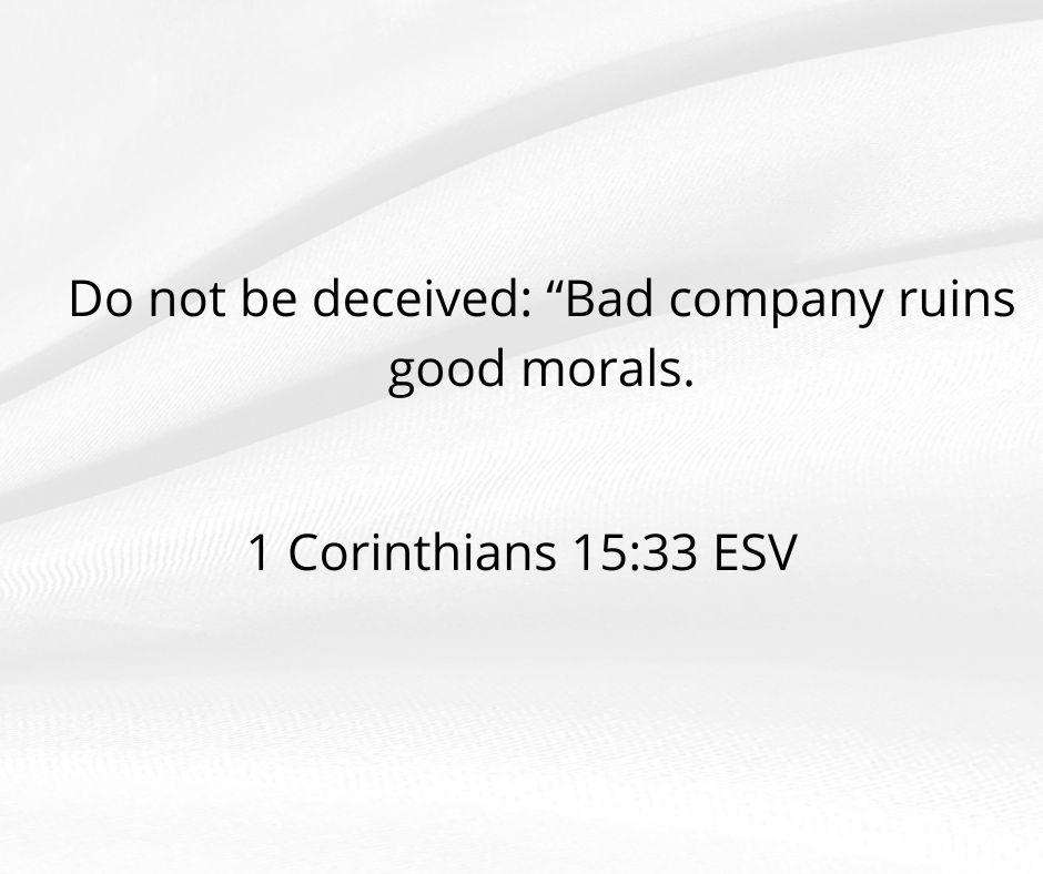 So keep good company, like-minded people who will encourage you in your Christian walk. Don’t waste precious time with negative and evil influencers.
