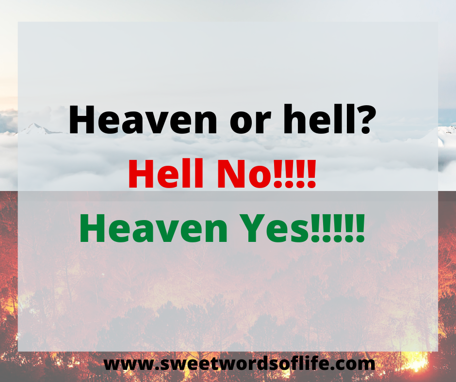 Heaven is the spiritual place where Christians will live with God for all eternity. Hell is prepared for Satan and his angels and is a place of never-ending torment, weeping, wailing, gnashing of teeth, unquenchable fire, and brimstone. No one should aspire to go to hell, and we should not wish for our worst enemy to go there.