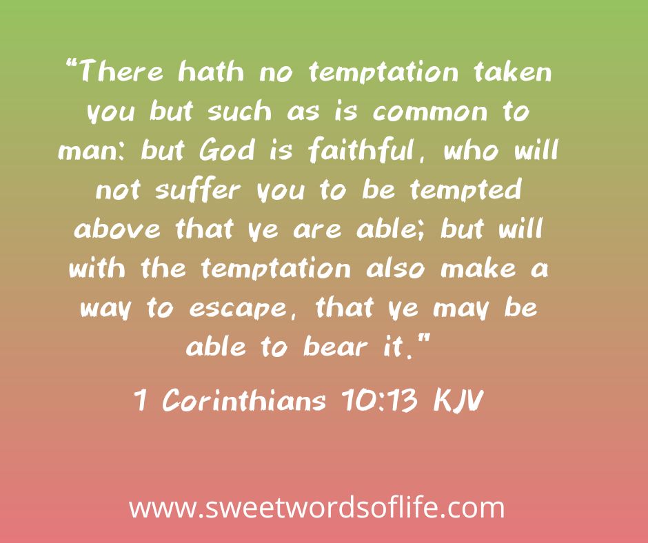 “There hath no temptation taken you but such as is common to man: but God is faithful, who will not suffer you to be tempted above that ye are able; but will with the temptation also make a way to escape, that ye may be able to bear it.”
