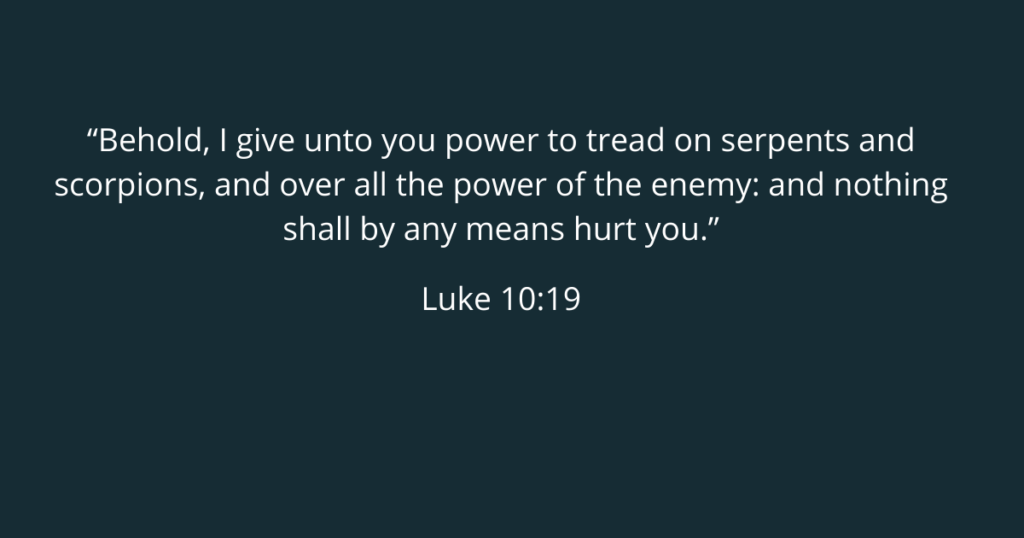 “Behold, I give unto you power to tread on serpents and scorpions, and over all the power of the enemy: and nothing shall by any means hurt you.”